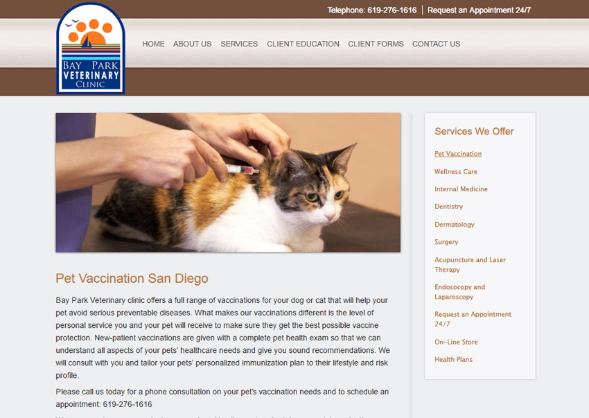 We worked with this customer to create clear, descriptive, and persuasive page text describing their pet vaccination service.