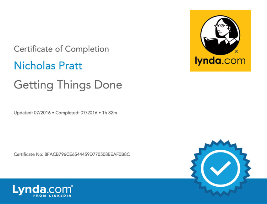 In Getting Things Done the author and world-renowned productivity and time management expert David Allen walked us through his five-step process for Getting Things Done. We learned how to stay on top of our work to avoid feeling buried by it while carving out space in our lives to do more meaningful things. We learned how to capture, clarify, organize, reflect, and engage with tasks that are demanding our attention, and come away with a clear head and a clear focus. Course link: https://www.lynda.com/Business-Skills-tutorials/Getting-Things-Done/170776-2.html