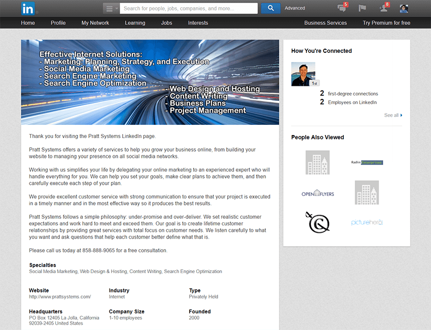 We set up this LinkedIn business page according to LinkedIn’s best practices. We regularly update it with valuable, relevant posts that engage our audience, increase the number of page likes, and increase sales.